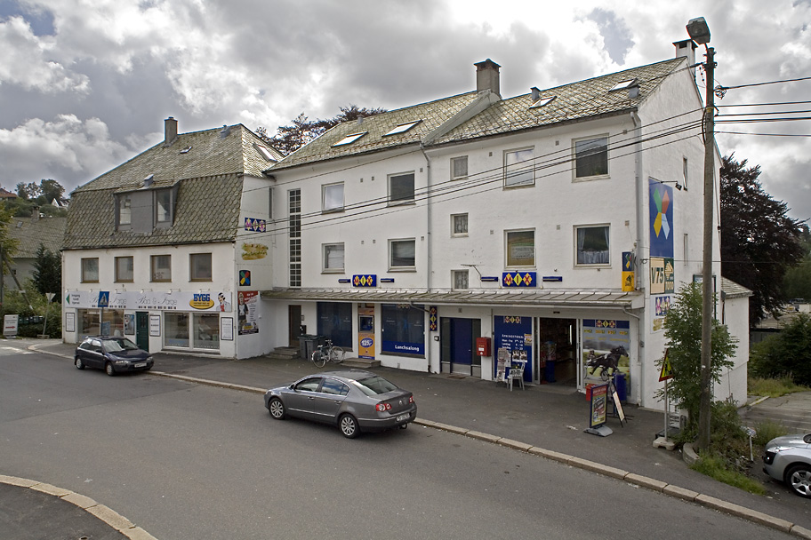 I bygget til venstre var det sykkelbutikk for fem år siden. Etter det var Gulvspasialisten (Minde Trelast) i lokalene, og nå er det baderom som gjelder (Bad & Farge, Bygg Partner Vest A/S).