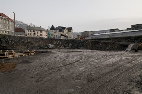 Der det skal bygges nye boliger i Kronstadparken er grunnarbeidene godt i gang 10 måneder etter at Bjørnsonsgate 7 ble revet.