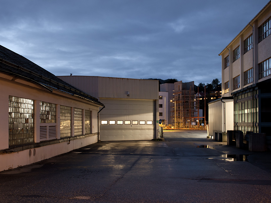 Meieritomten i kveldingen. Bildene inne på området er tatt september 2012.