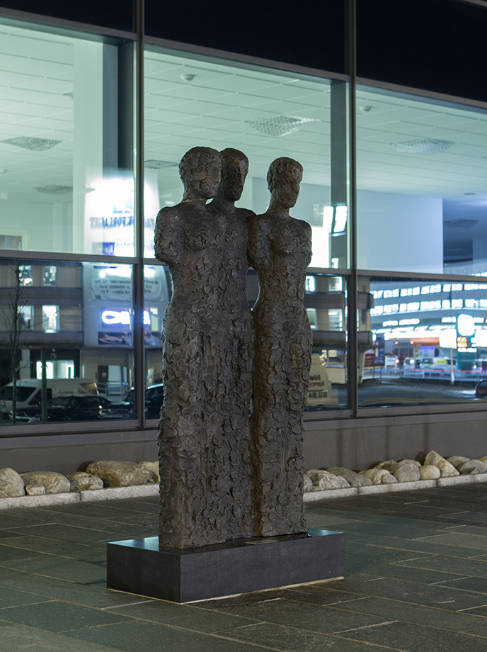 Stor bronseskulptur østsiden, mot Kanalveien. Umerket.