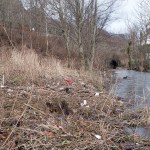 Fjøsangervassdragets naturlige utløp er innerst i Fjøsangerbukten. I dag er det bare en liten del av vannet fra nedslagsfeltet som renner ut her. «Det meste av vannet føres i tunnell fra Kristianborg til Knappen renseanlegg før utløp i Grimstadfjorden» – Faktaark fra Bergen kommune.