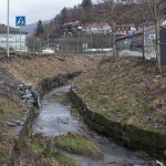Det som er igjen av det naturlige løpet kommer ut på sørvestsiden av Fjøsangerveien, ved Karmbua. Elven renner videre forbi REMA 1000, under rundkjøringen ved Straumeveien og ut i Nordåsvannet.