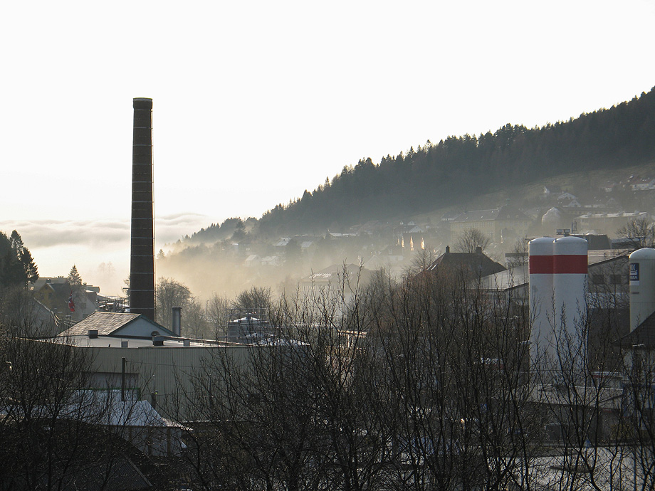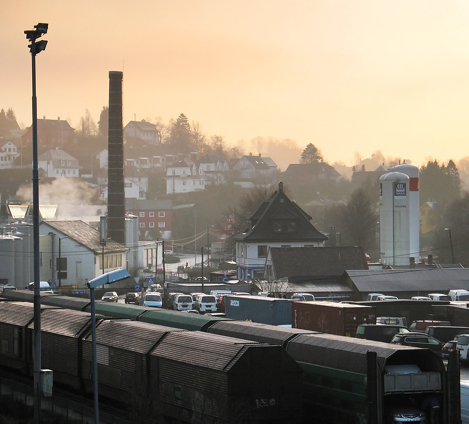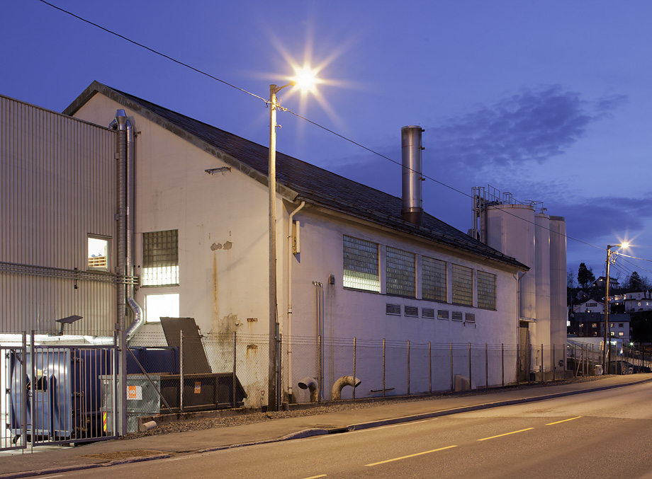 Fyrhuset på området til Tine Meierier hadde tidligere en høy skorstein i tegl som ble revet for 7-8 år siden. Meieriet ble oppført omkring 1960 etter tegninger av arkitekt Leiv Tvilde.