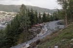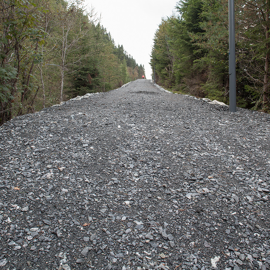 Som jeg skrev i april ble nåværende byggetrinn av Løvstien fremført til rasvollen nedenfor stupet i Løvstakken. Veien følger selve vollen som nå er gruslagt, og lysstolper er kommet på plass.