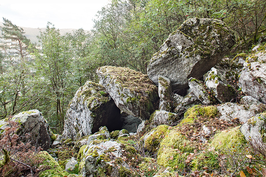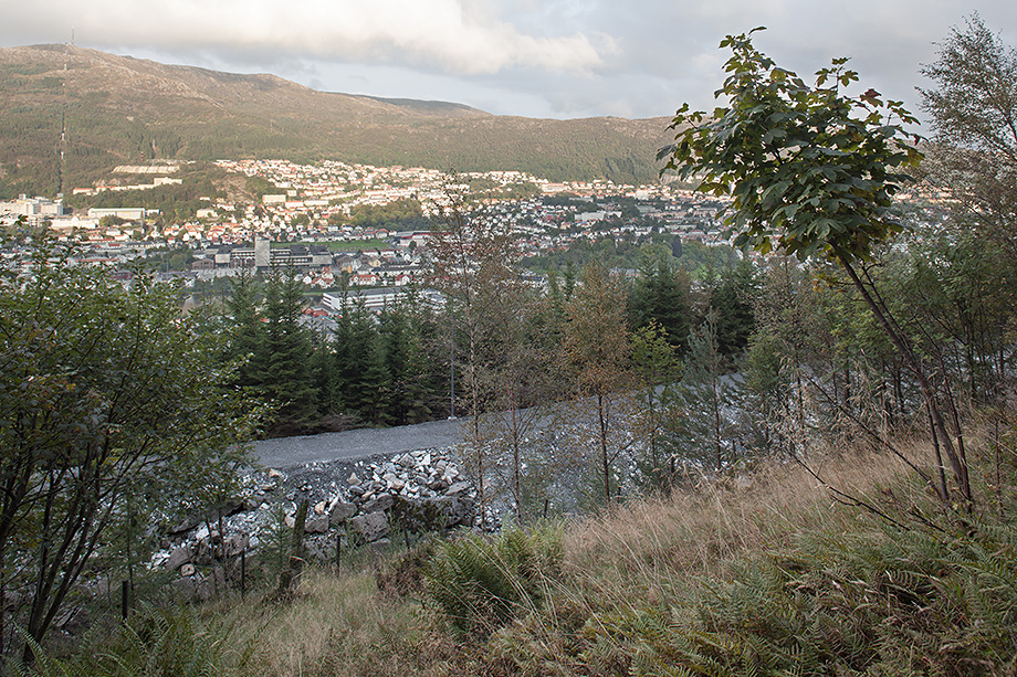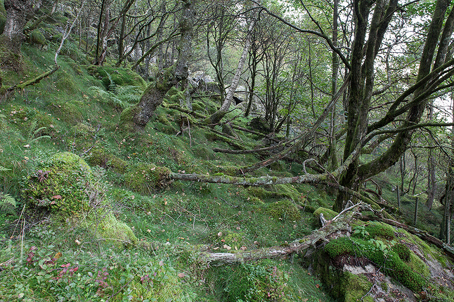 I skråningen ovenfor rasvollen er det en stor ur og temmelig ufremkommelig.