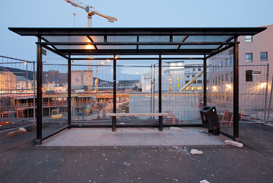 Omgivelsene er endret. Busskuret er det samme men er flyttet noen meter vestover.