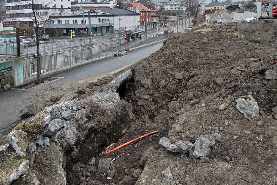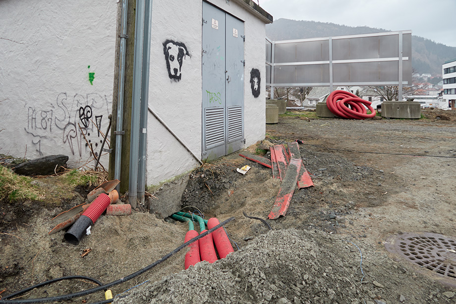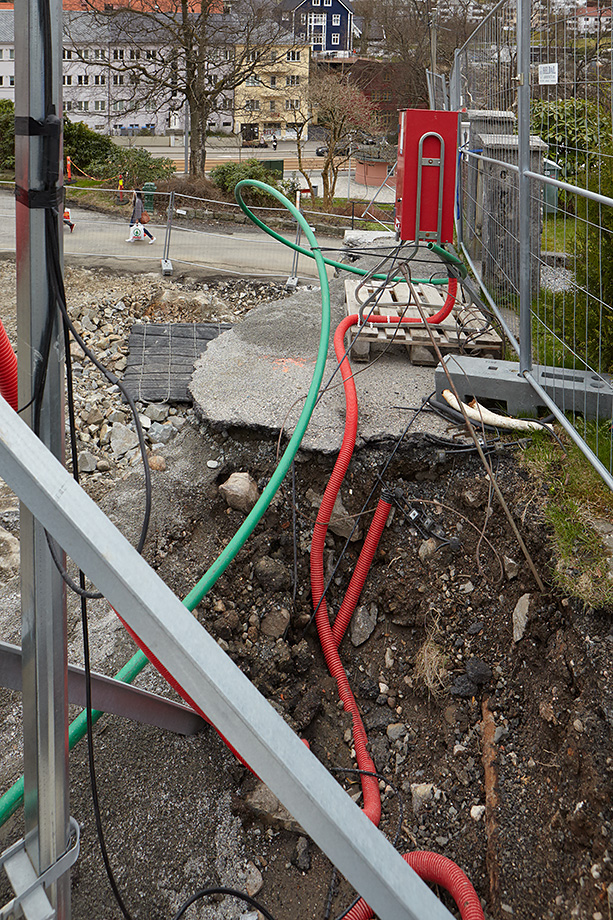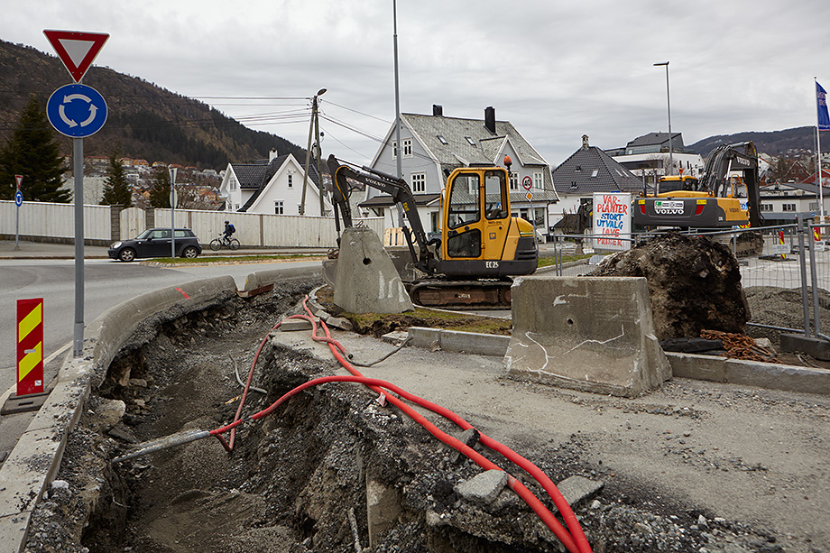 Det graves flere steder på Wergeland. Røde og grønne slanger kryper over alt.