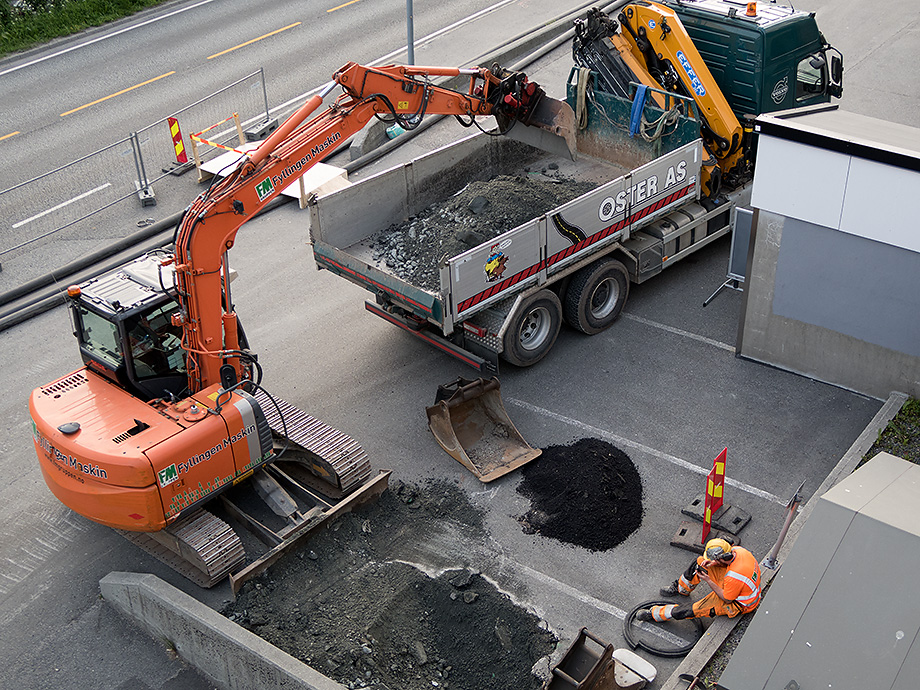 Det arbeides intenst med kloakken i Kanalveien i disse dager.