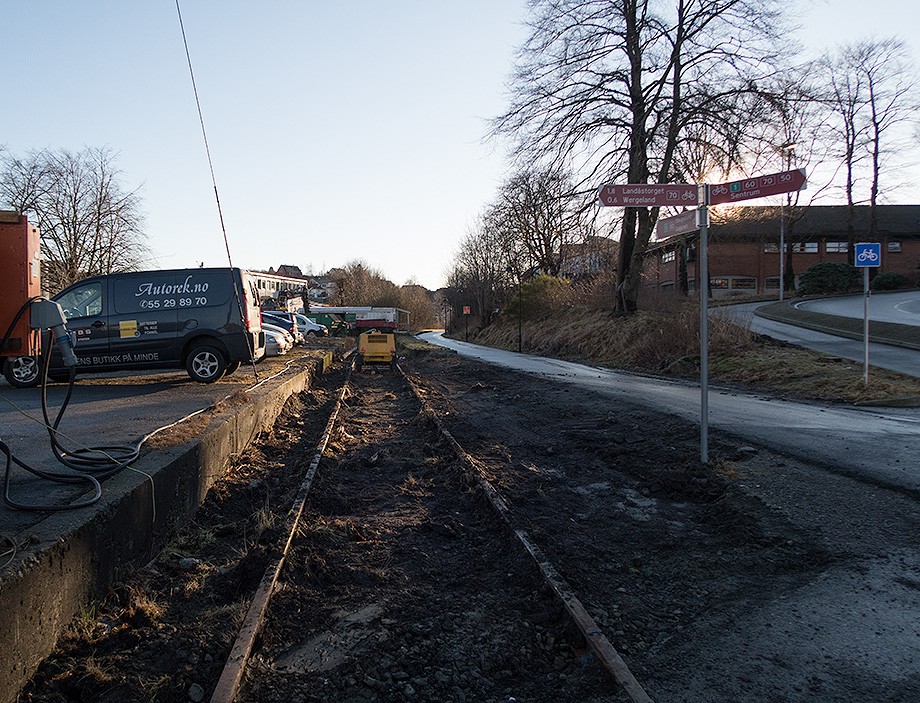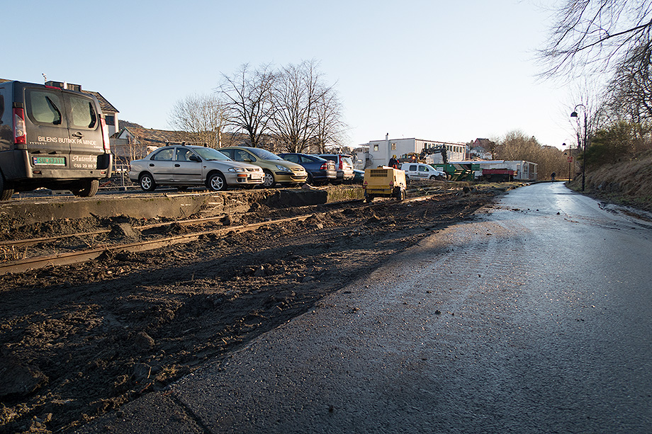 Arbeidet med gang- og sykkelvei fra Minde Allé til Fabrikkgaten er påbegynt.