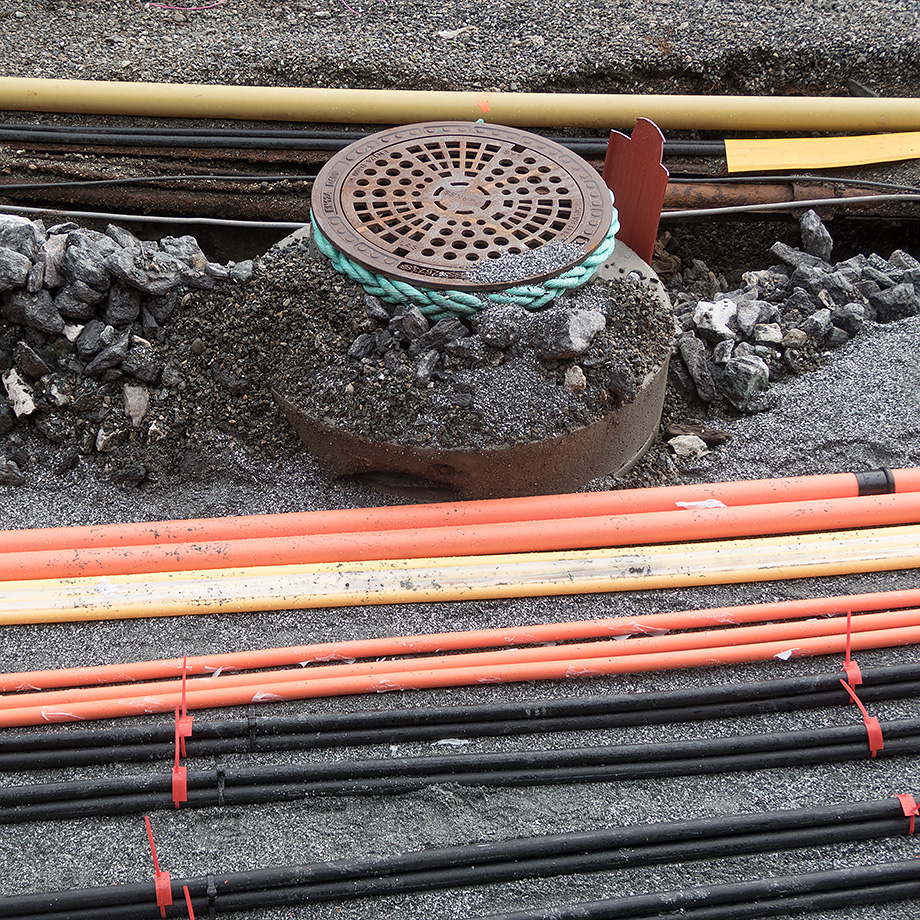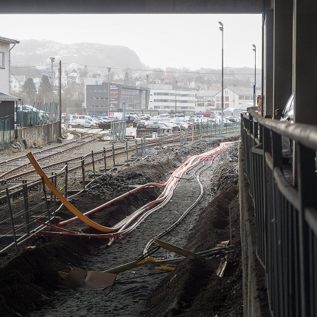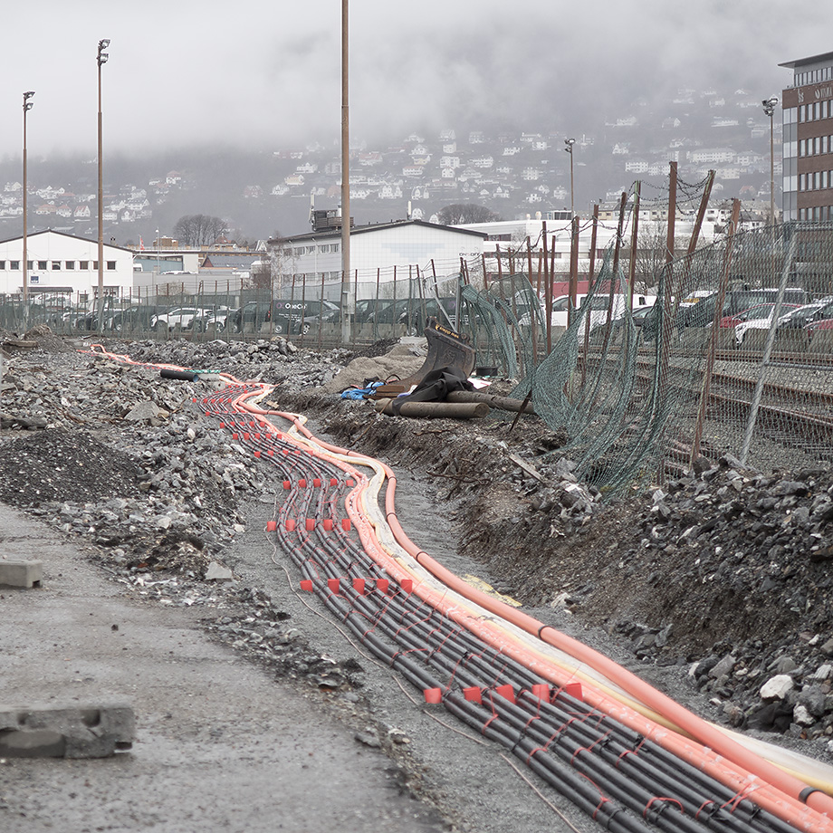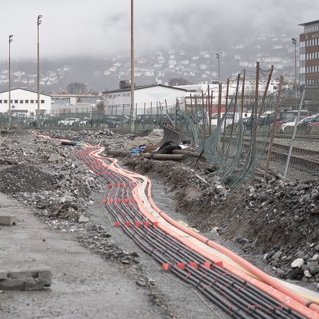 Der hvor sykkelstien bygges på Mindemyren legges det kabler i traséen.