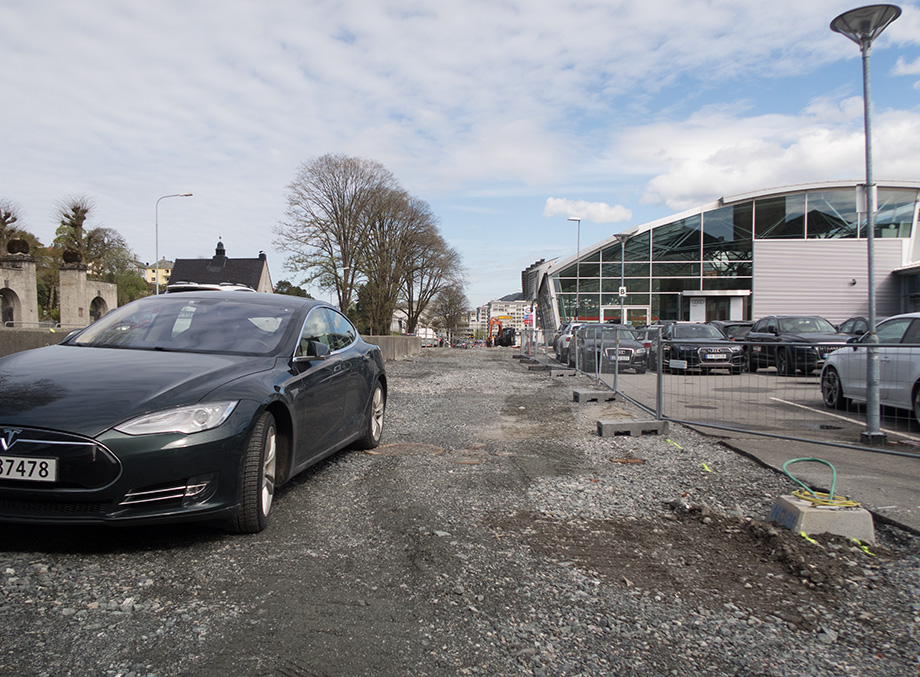 Traséen for gang- og sykkelvei langs Fjøsangerveien ved Siemens er planert.