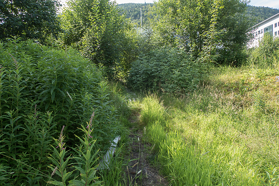 Det går en sti mellom sykkelstien og Kanalveien på høyde med NRK.