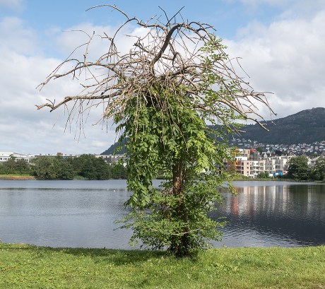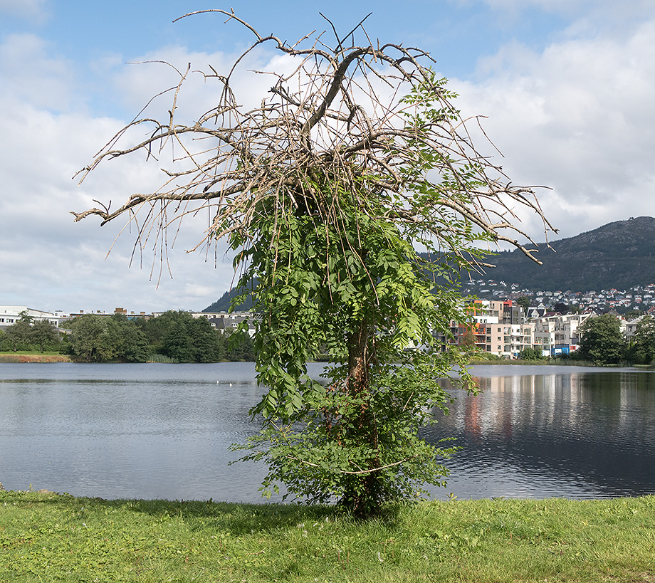 Mange asketrær i Bergen er angrepet av askeskuddsyke, en soppsykdom. Kanskje også denne hengeasken ved Solheimsvannet.