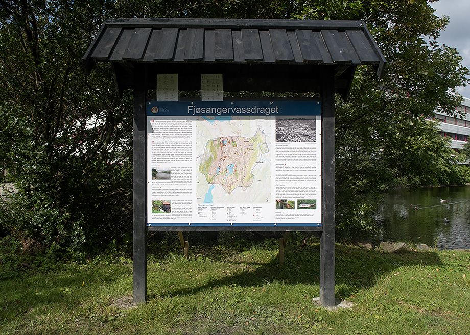 Ved Solheimsvannet er det kommet informasjonstavle om Fjøsangervassdraget. Der kan vi blant annet lese at nedbørsfeltet er ca 10 kvadratkilometer og omfatter deler av Løvstakken og Landåsfjellet. Vassdraget har utløp i Nordåsvannet.