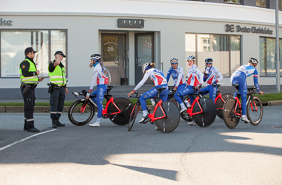 Mange nye sykkelveier er etablert, og politiet er på plass for å veilede franske syklister som ikke er så kjent på Wergeland.