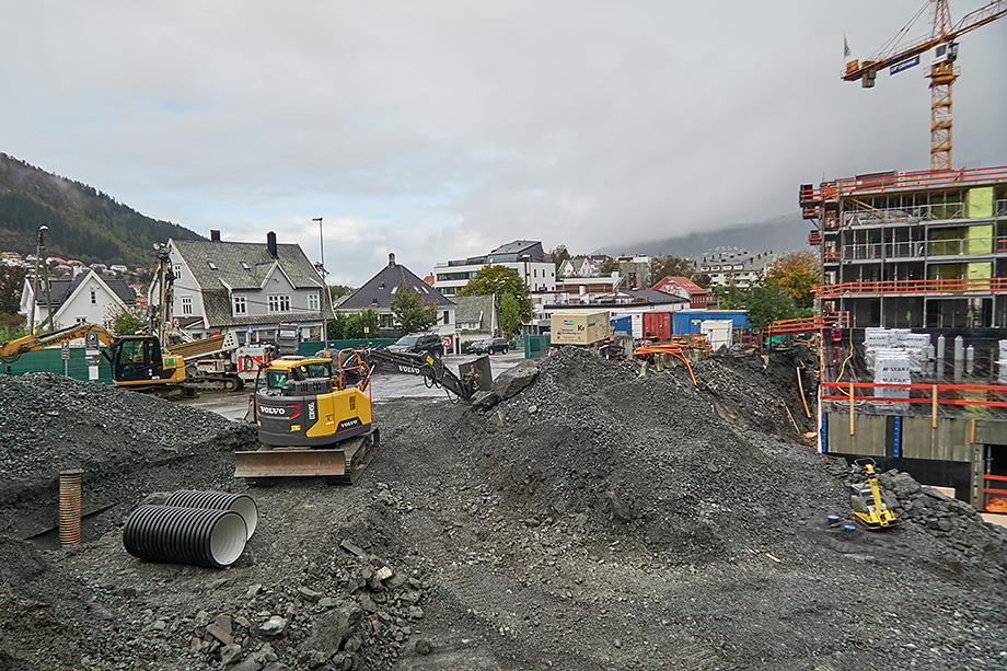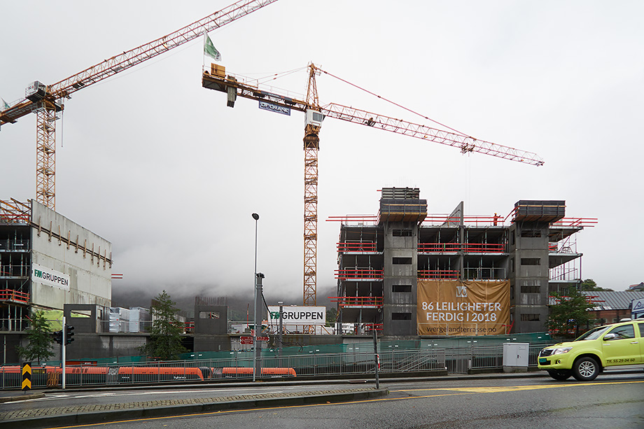 Ved bybanestoppet på Wergeland skal det stå 86 leiligheter ferdige i 2018.