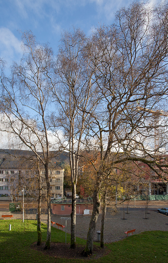 Bjerkene samme sted har lagt fra seg høstfargene for i år.