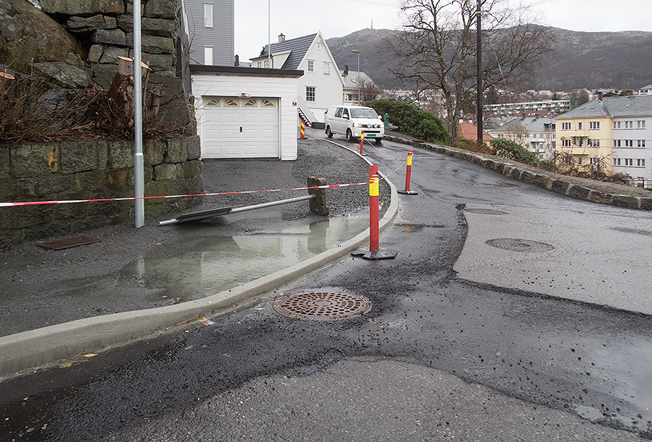 Nye, flotte fortau i Falsens vei / Svaneviksveien.