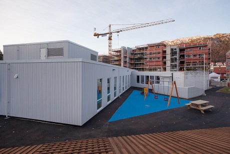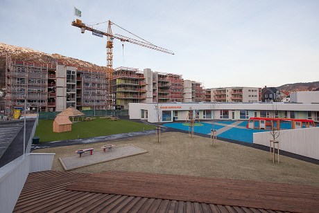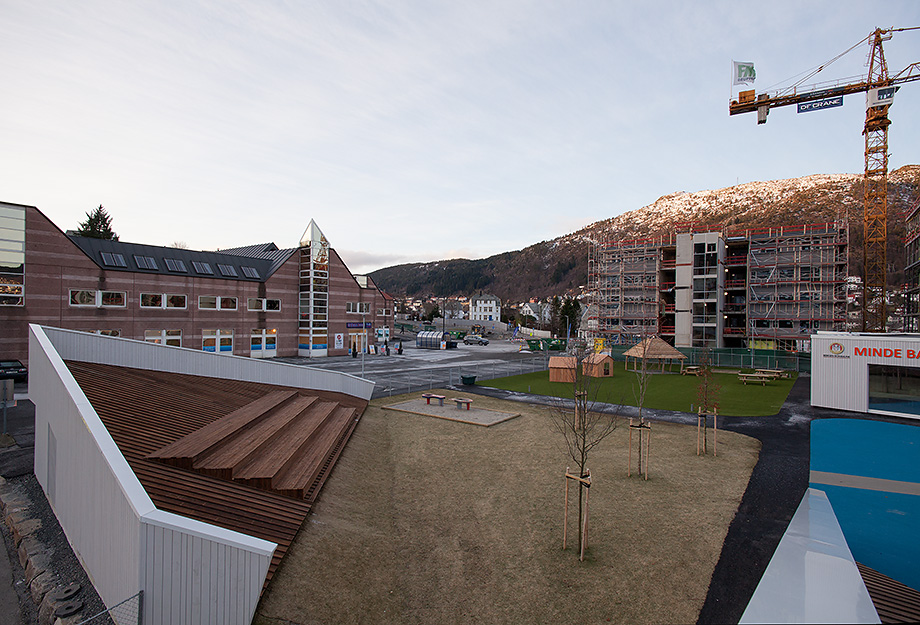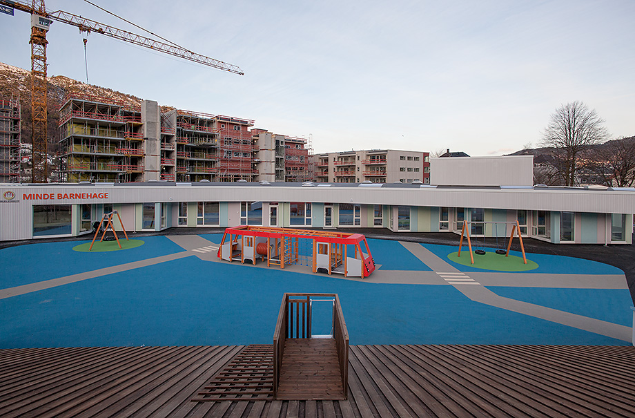 Minde barnehage er ferdig, med kjøpeplen, kunstgress og bybane.