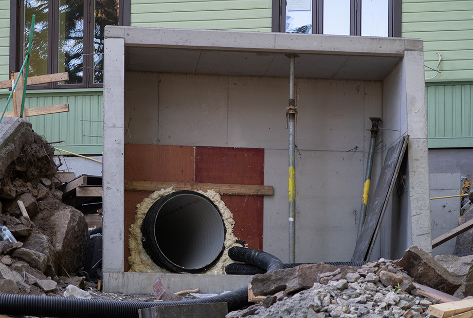 Nå installeres et solid anlegg for frisk luft i det som skal bli Leaparken barnehage.