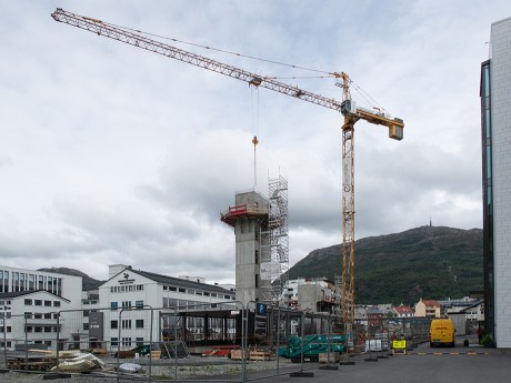 Her har det stått en kran før. Dette kontorbygget i Kronstadparken ble påbegynt i 2015.
