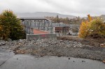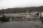 Jeg forsøkte å ta bilde fra bussen da ett av elementene ble heist på plass fredag kveld, men det ble litt uskarpt.