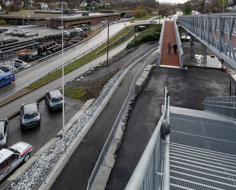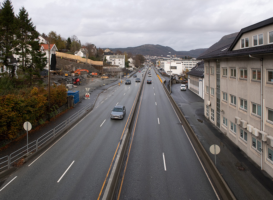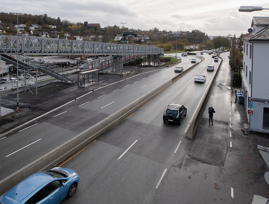 Utsikten er god fra den nye gang- og sykkelbroen over Fjøsangeveien som ble åpnet i dag.