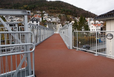 Siden broen er så høy er det 4 hårnålssvinger opp tilkomsten fra Kanalveien.