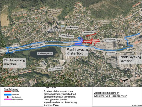 Det siste bildet viser mulige trasévalg for gående og syklende og er hentet fra facebooksiden til Bybanen.