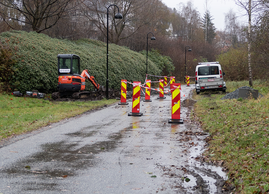 Arbeidet gir nedsatt fremkommelighet på sykkelstien vest for Kristianborgvannet.