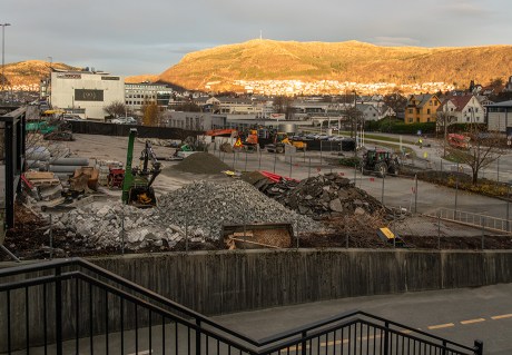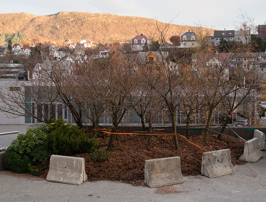 Kirsebærtrærne som sto midt i traséen for Bybanen til Fyllingsdalen er midlertidig tatt vare på.