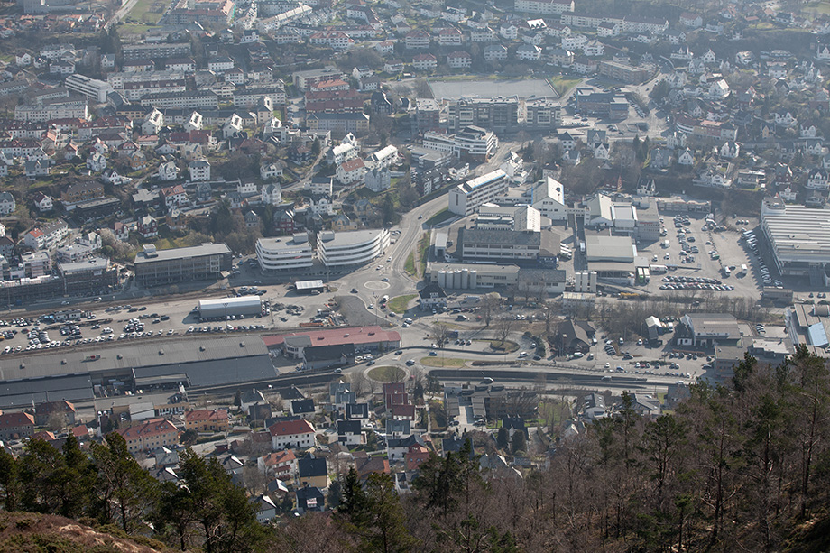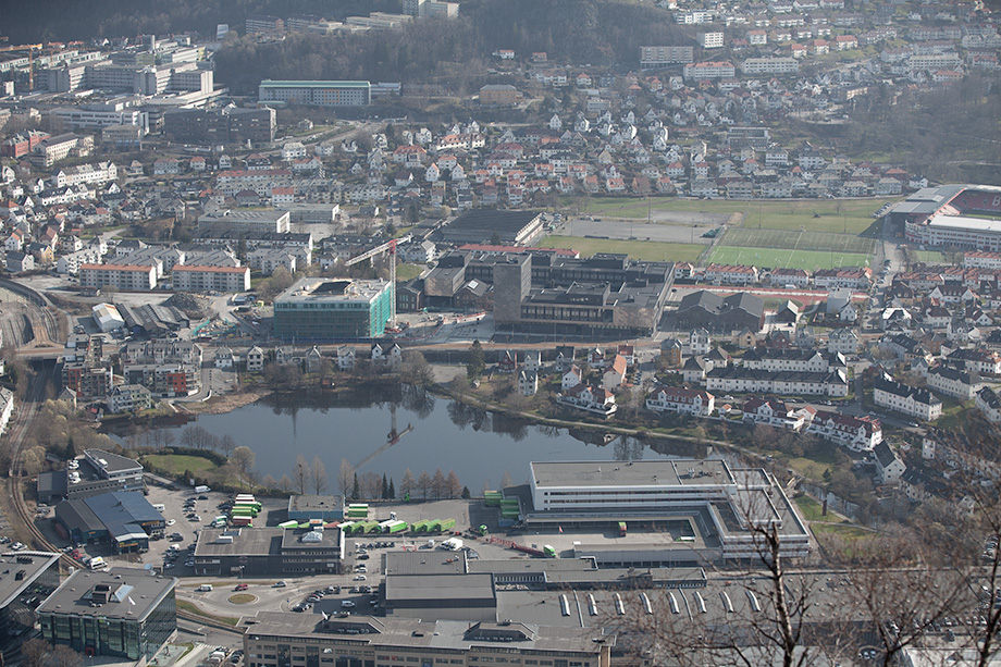 19,3 grader i Bergen i går. Varmere enn noen gang så tidlig i april. I dag er det disig over Mindemyren og resten av Bergensdalen. Bilder tatt fra Løvstakken i dag: