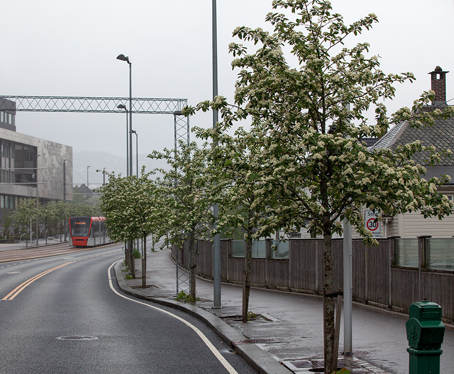 Bildene er fra området omkring bybanestoppet på Kronstad. Trærne ble plantet da Bybanen var ferdig. Den opprinnelige alléen ble hugget våren 2008.