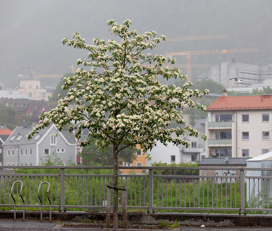 Asaltrærne i Inndalsveien blomstrer som besatt etter den varme sommeren i fjor. Mange trær reagerer med kraftig blomstring etter at de har vært utsatt for store påkjenninger, som ekstrem varme, kulde eller tørke.