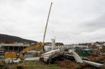På andre siden av Kanalveien er villniss og trær hugget ned og en bygning er revet for å gi plass til Bybanen.