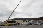 Tanker for melkeprodukter fjernes fra det gamle meieriområdet.