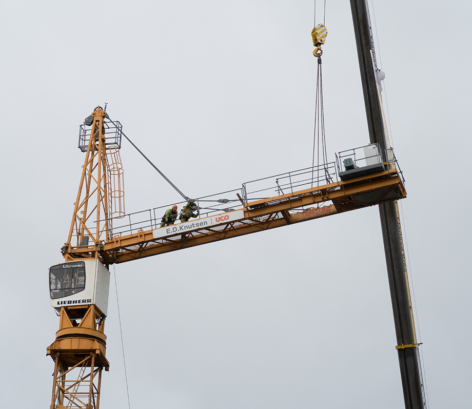 Byggekranen på Kristianborg er tatt ned og settes opp i Minde Allé.