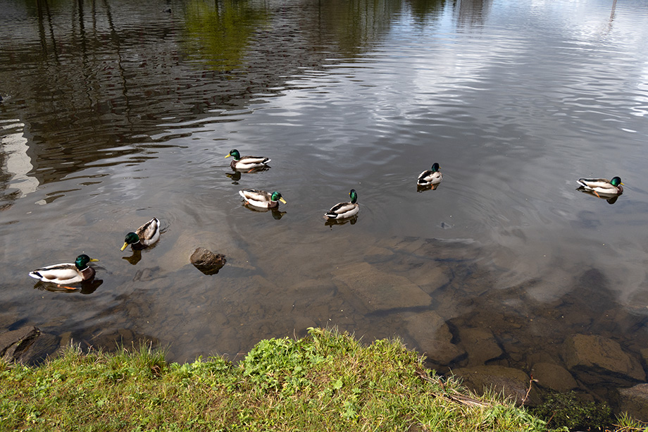 Andrikene henger ved bredden uten noe særlig å ta seg til.