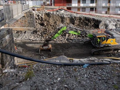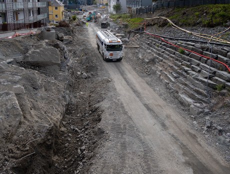Det graves dypt i bybanetraséen fra Kronstad mot Mindemyren.