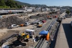 Gjennom året er det arbeidet med legging av nye rør for fjernvarme over Mindemyren. Her er bilder fra noe av arbeidet nord for Minde Allé hvor traséen følger den tidligere gang- og sykkelveien.