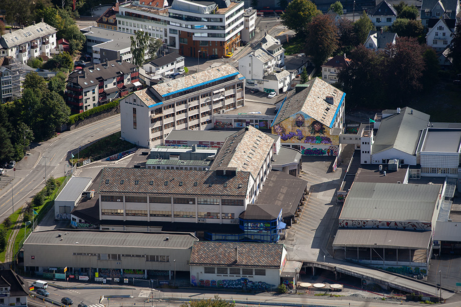 Utsikt fra Løvstakken mot meieriområdet på Minde i 2010, 2019 og 2020: