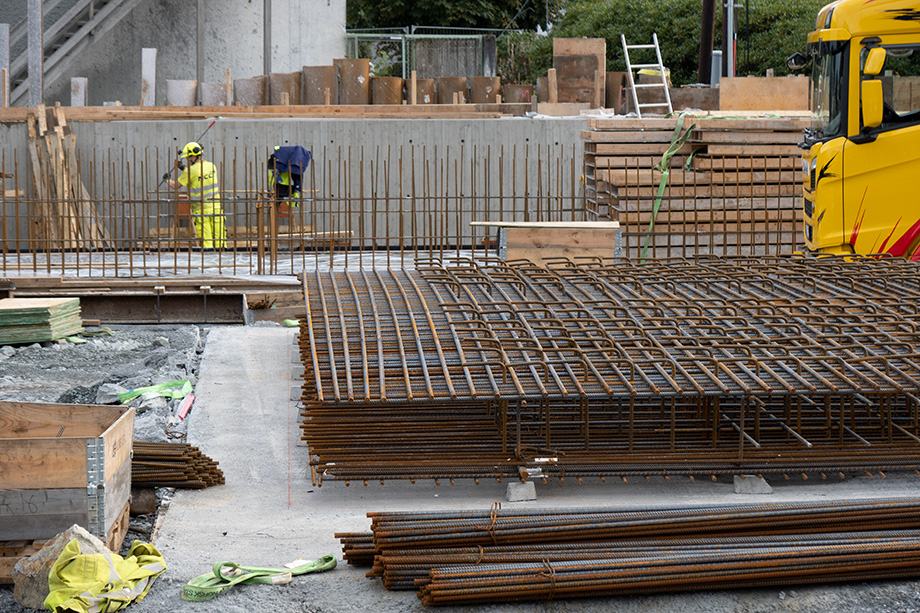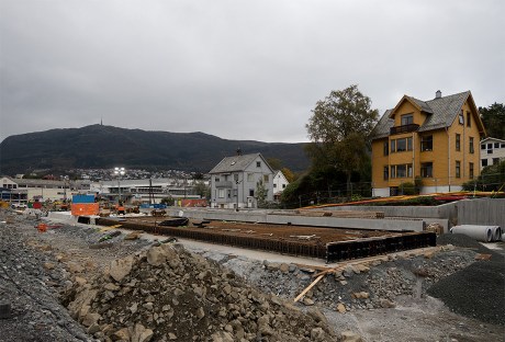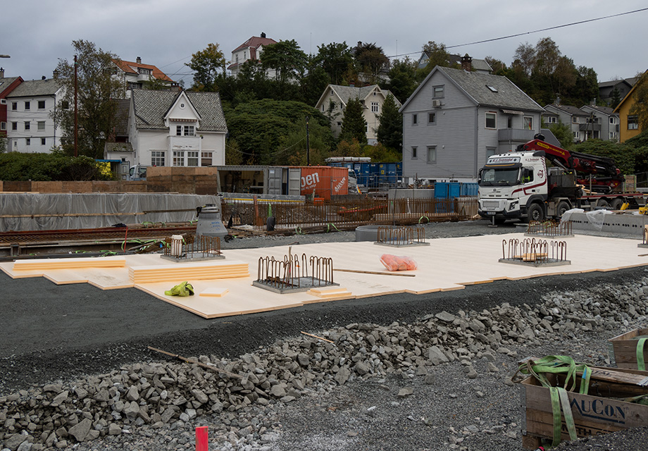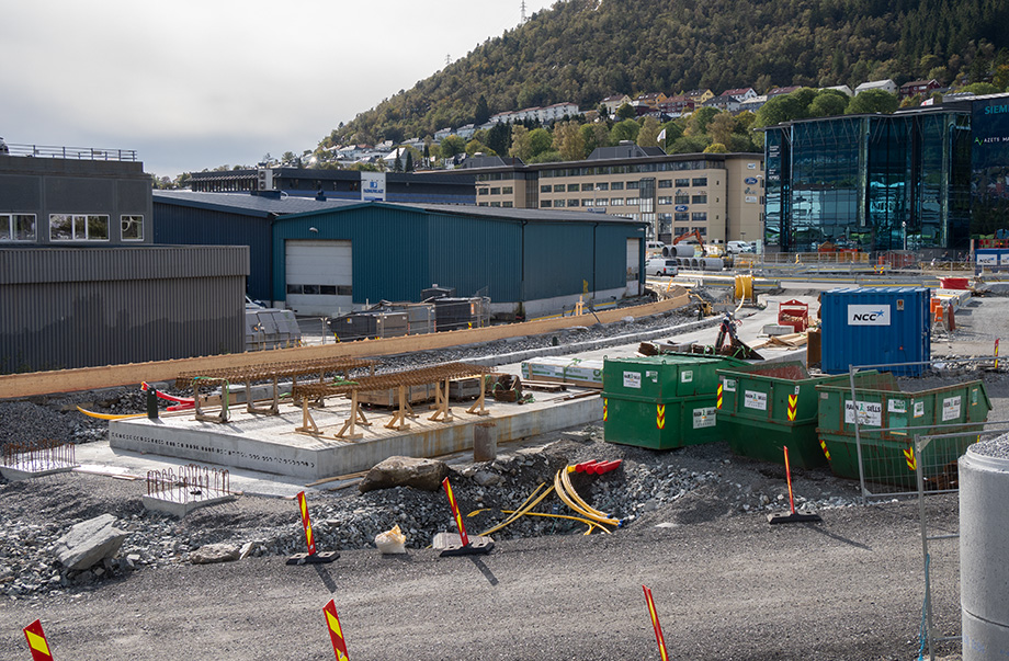 Det støpes underlag/fundament (dette vet kryssordløsere alt om) for skinnegangen til Bybanen på Mindemyren. Arbeidet er kommet lengst på Kristianborg. Der støpes kanalen parallellt: