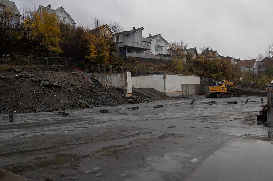 Trærne er hugget og utgraving av den store tomten i Eikevegen er startet. Dette blir en del av utbyggingen «Minde Allmenning». Planbeskrivelse her.