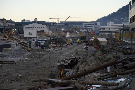 Bybanetraséen er synlig på det meste av området langs kanalen nå.