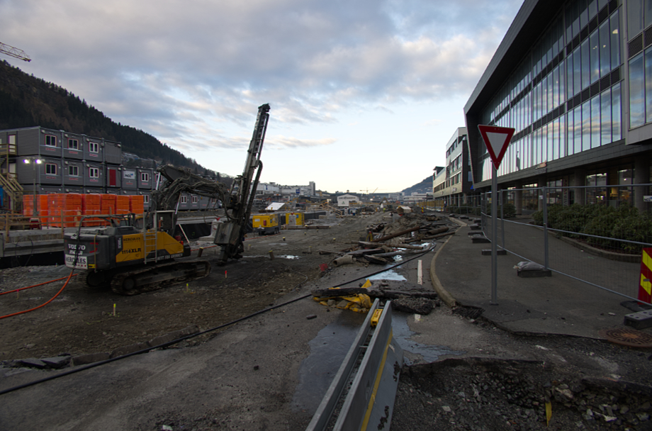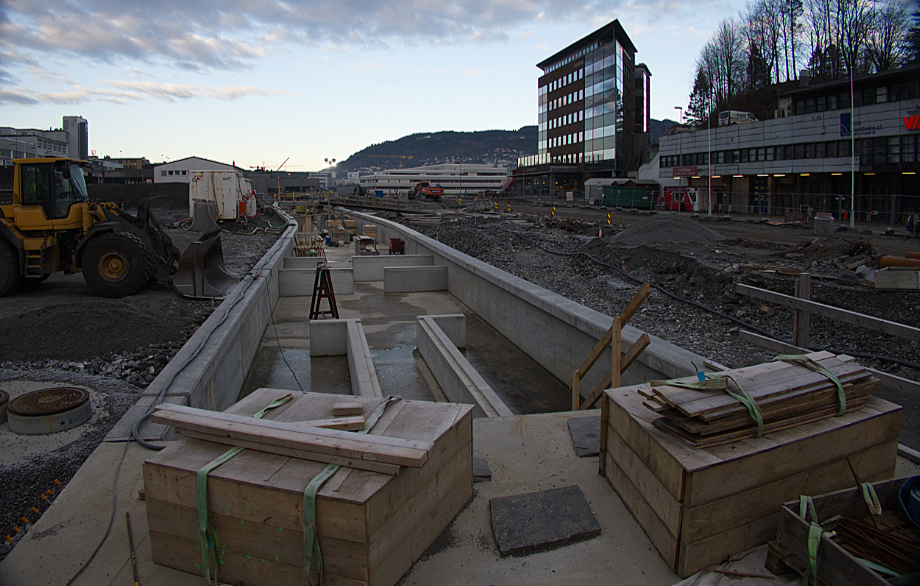 Bybanetraséen er synlig på det meste av området langs kanalen nå.