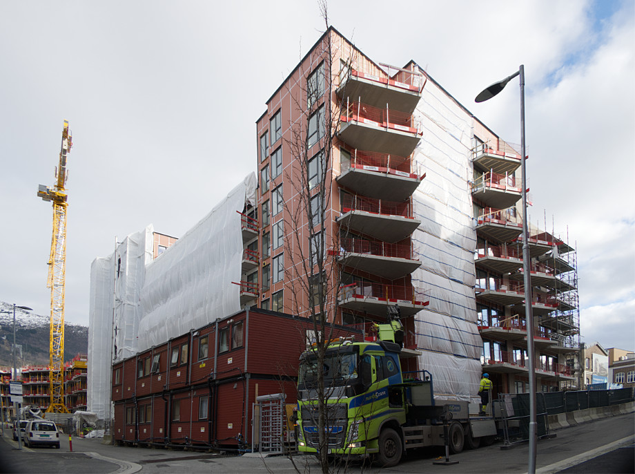 Hus B og C nærmere Bjørnsonsgate nærmer seg sin fulle høyde.
