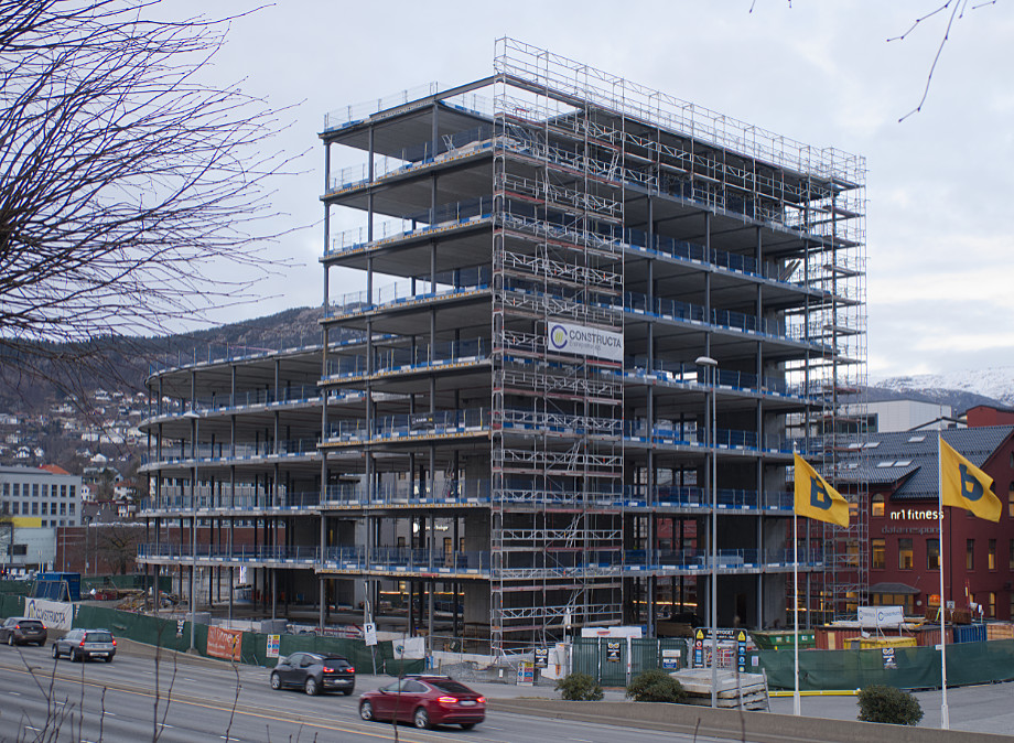 Bygget er ganske gjennomsiktig nå, men buen er ikke synlig fra sydsiden.