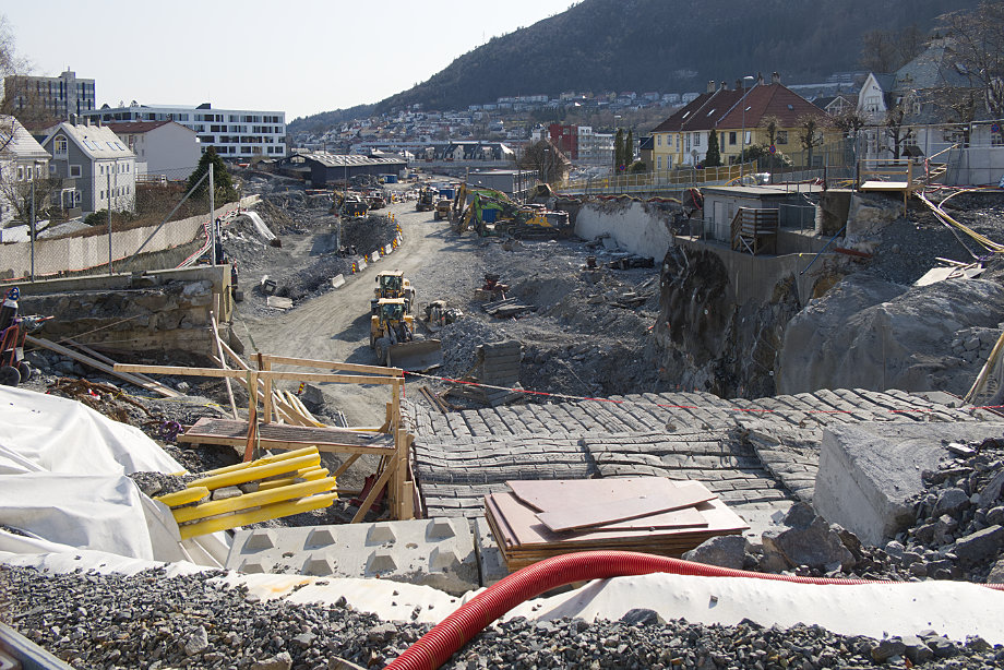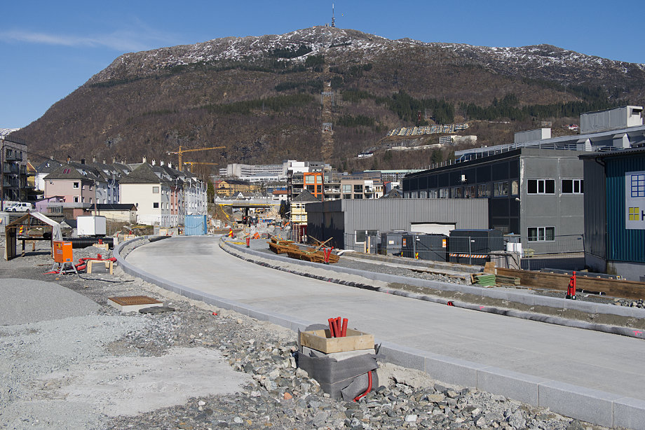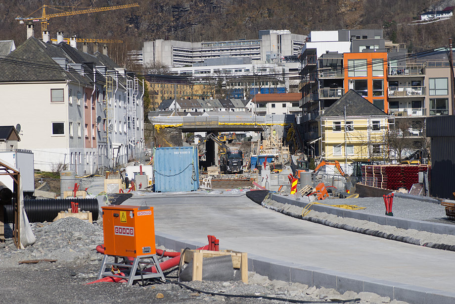 Det arbeides intenst på det nye bybanestoppet på Kronstad og på begge sider av dette. Den nye bybanelinjen skal krysse under Inndalsveien og dermed under linje 1. Fra Kronstad mot Haukeland skal banen gå i tunnel. Den gamle jernbanetunnelen som har åpning samme sted blir gang- og sykkelvei mot Møllendal og sentum.