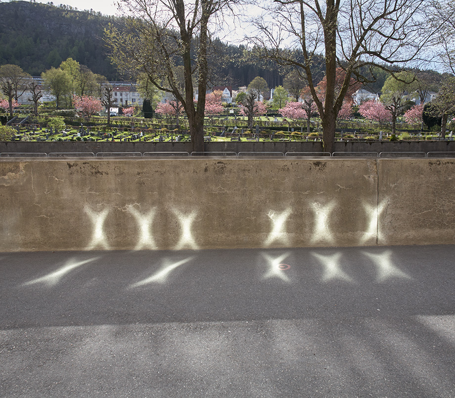 Noen av blokkene er sikret med betong i forkant. Et par også med kjetting.