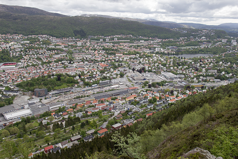 Fra Løvstien tar det ca 20 minutter før jeg er oppe i åpent terreng og får utsyn mot Kronstad og Mindemyren.
